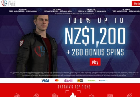 Capitão gira o bônus do cassino € 1200 + 260 rodadas grátis