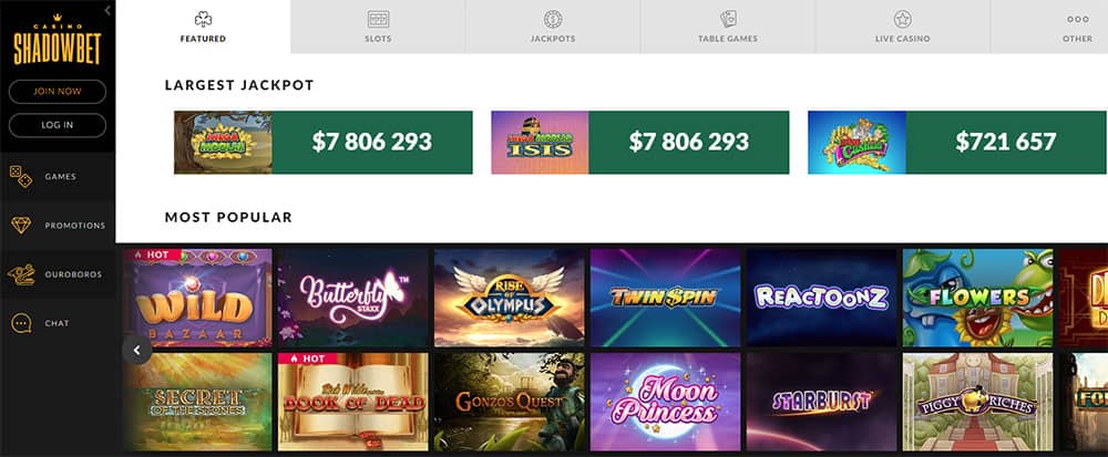 Existem mais de 1.000 títulos de jogos oferecidos no Shadowbet Então, você definitivamente poderá escolher seus favoritos de um grande número de clássicos e vários novos lançamentos adicionados regularmente ao portfólio do site. Em termos de provedores de jogos disponíveis, incluem: